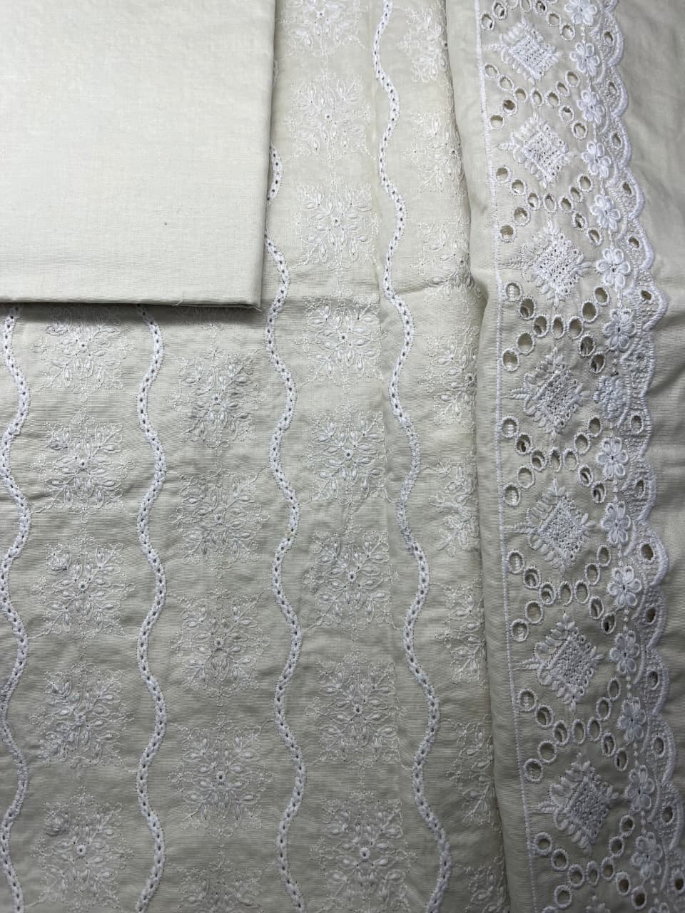 2-PC Lawn Chicken Embroidery – All Over Shirt with Same Fabric Dyed Trouser [OFF WIGHT COLOR]